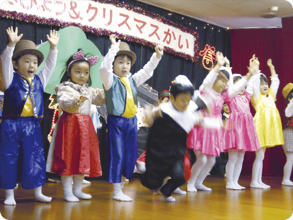 戸山保育園では1年を通していろいろな行事を行っています。お友達やご家族の方と一緒に一つの目標に向かって力を合わせながら、協調性や社会性を育んでいきます。